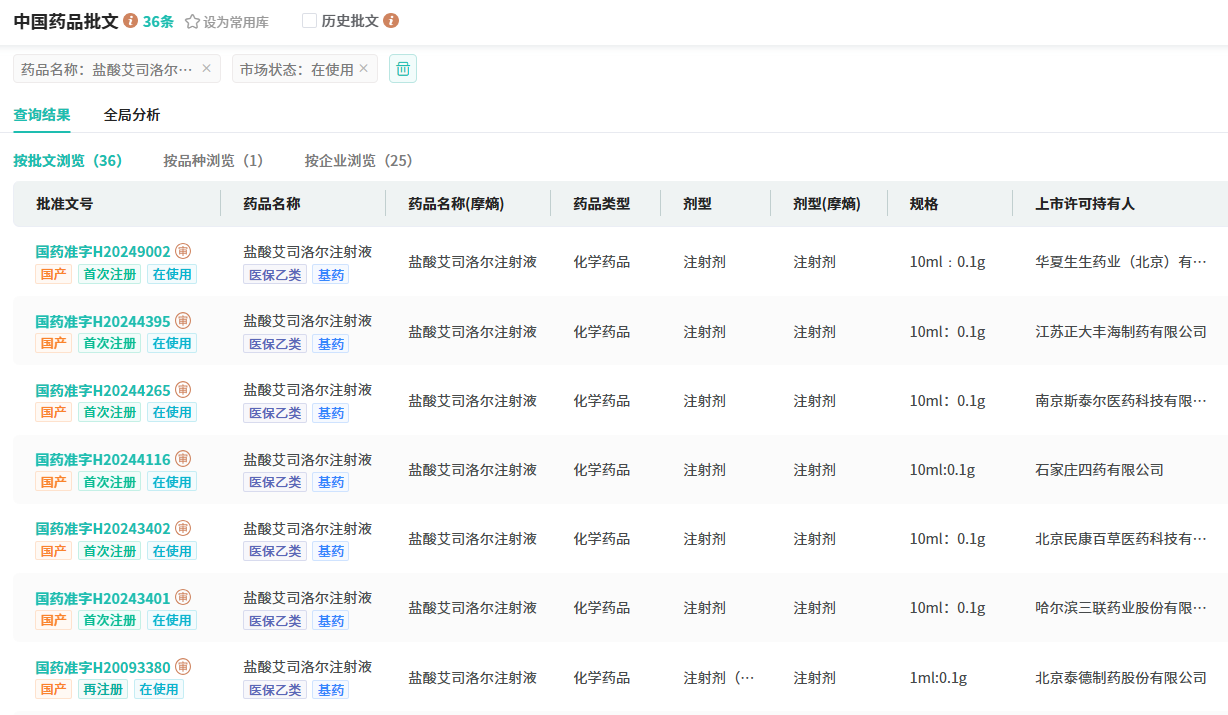 艾司洛尔的原研厂家为Baxter Healthcare(美国百特医疗用品公司),最早于1986年12月31日在美国上市。艾司洛尔是一种超短效心血管系统药物选择性的β1肾上腺素受体阻滞剂,被广泛用于治疗室上性快速性心律失常、急性冠脉综合征以及围手术期高血压、心动过速、心肌缺血等。艾司洛尔注射剂为第十批拟集采品种,据摩熵医药数据库显示,该品种在2023年全国院内市场的销售额超8亿元,同比增长达9.38%。
