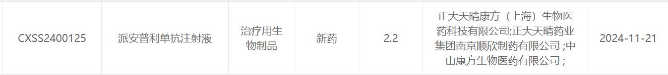 11月21日,据CDE官网公示,康方生物和正大天晴在研的抗PD-1抗体派安普利单抗注射液,以及正大天晴在研的盐酸安罗替尼胶囊上市申请获得受理。