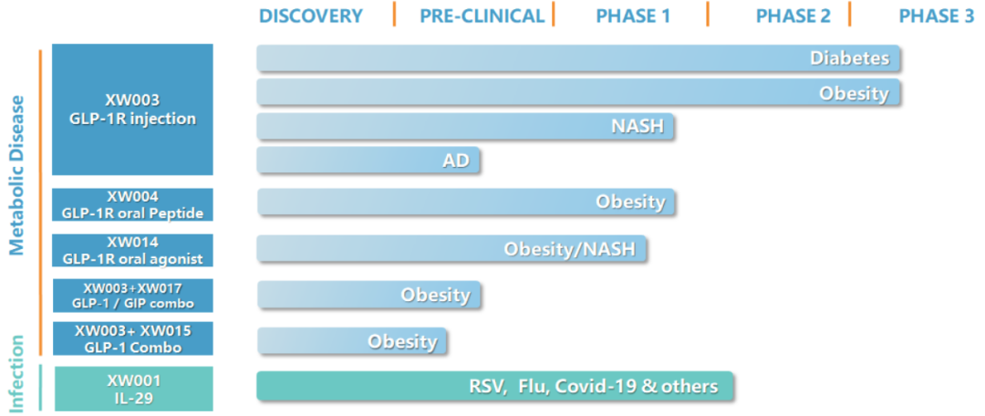 先为达生物是一家临床阶段、专注于研究和开发治疗代谢性疾病的创新疗法的生物制药公司,研发管线包括同类首创和最佳候选药物,长效GLP-1多肽伊诺格鲁肽注射液、口服GLP-1多肽伊诺格鲁肽和口服小分子GLP-1受体激动剂XW014等。