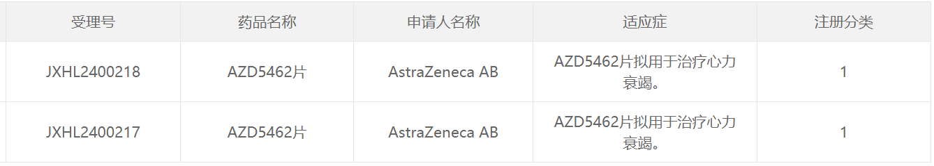 11月29日,据CDE官网最新公示,阿斯利康申报的1类新药AZD5462片获得临床试验默示许可,拟开发治疗心力衰竭。