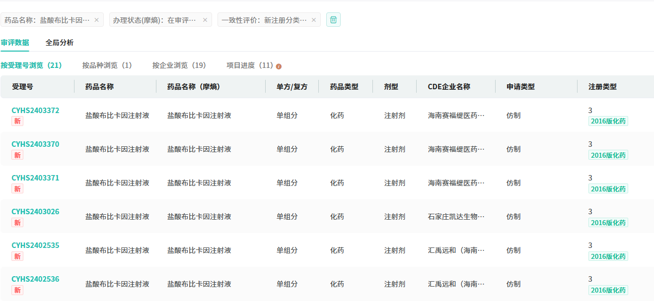 此外,今年10月,科伦药业子公司湖南科伦制药的“布比卡因脂质体注射液”获批上市,视同通过一致性评价,成为我国第二个上市产品。此次,科伦药业的盐酸布比卡因注射液迎来过评,成为业界唯一拥有两种布比卡因制剂的生产批文的药企。目前,在仿制药布局方面,盐酸布比卡因注射液在国内已有19家药企提交仿制申请,均处于审评审批阶段。