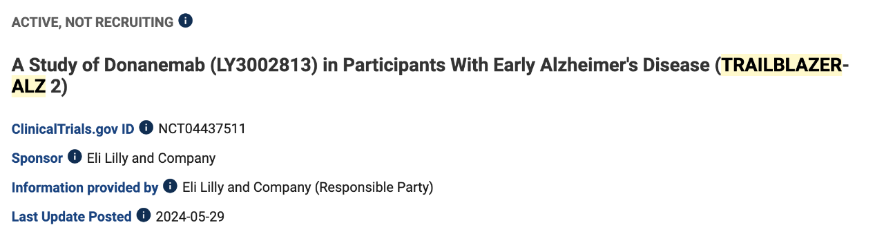 在中国市场,礼来也在积极推进donanemab的研发进程。此前,该公司已完成了一项针对中国健康受试者的donanemab1期研究,评估了其安全性、耐药性和药代动力学特性。2022年9月,礼来又启动了TRAILBLAZER-ALZ 5国际多中心、随机、双盲、安慰剂对照3期研究,这是一项在中国和韩国进行的针对早期症状性阿尔茨海默病的注册试验,旨在评估donanemab在存在脑tau蛋白病理的早期症状性阿尔茨海默病患者中的安全性和有效性。目前,该研究正在进行中,并计划在中国招募400名受试者。