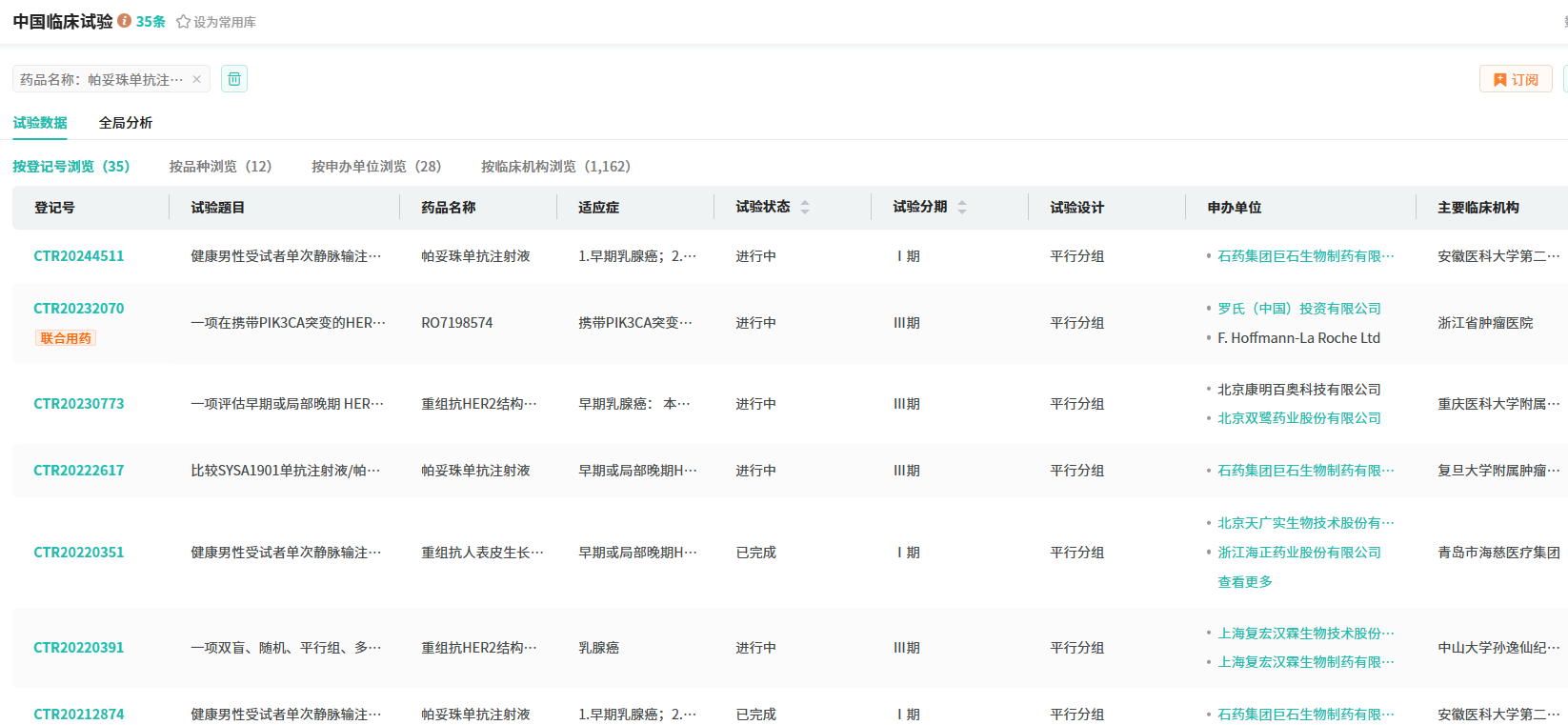 截图来源:摩熵医药(原药融云)中国临床试验数据库