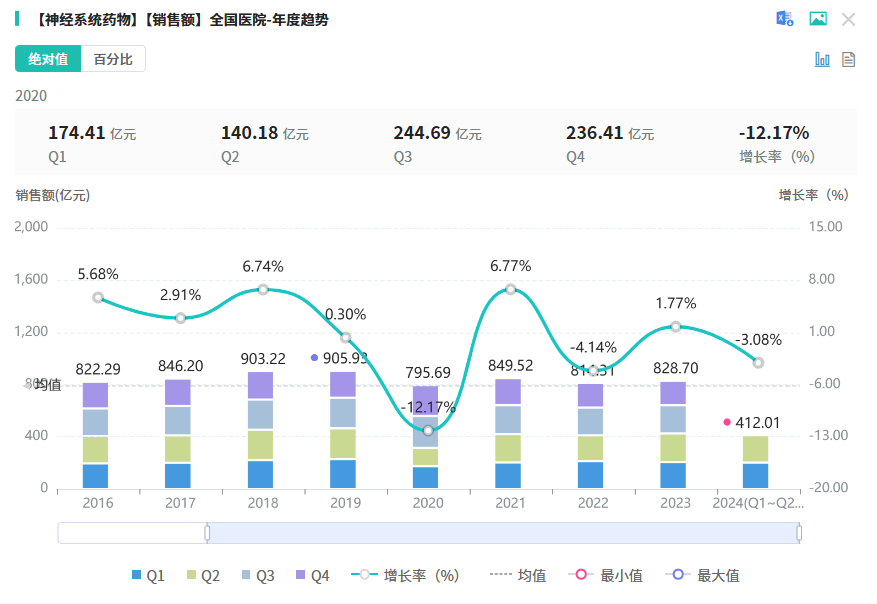 海思科以“创新”为基石,持续加大研发投入,着力推进创新药研发进程。截至目前,公司已成功斩获25款1类新药的临床试验批文,其中有6款神经系统的1类新药,涉及HSK-21542注射液、苯磺酸克利加巴林胶囊、环泊酚乳状注射液、HSK-21542片、HSK-36357胶囊及环泊酚。据摩熵医药数据库最新数据显示,2023年全国院内神经系统用药市场销售额已超过800亿元,彰显了该领域巨大的市场潜力与需求。