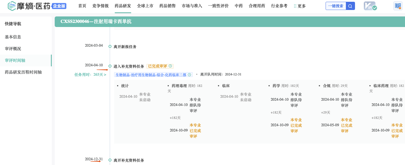 瑞卡西单抗2024年4月发补后,快速获批