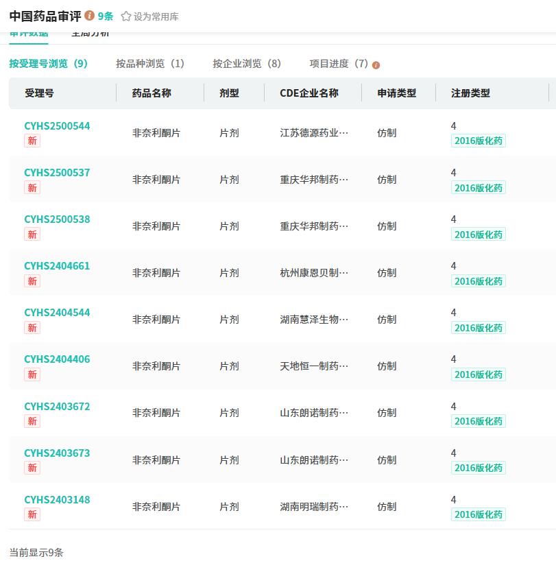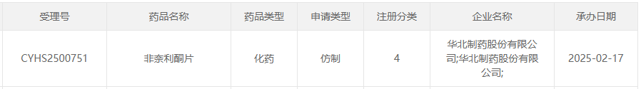 目前,非奈利酮片的市场竞争尚不激烈,仅有拜耳一家拥有生产批文。然而,在仿制药领域,已有重庆华邦制药、杭州康恩贝制药、湖南九典制药等8家企业提交了4类仿制上市申请,均在审评审批中。此次,华北制药若能顺利获批,将有望拿下非奈利酮片的国内首仿,从而在市场竞争中占据先机。