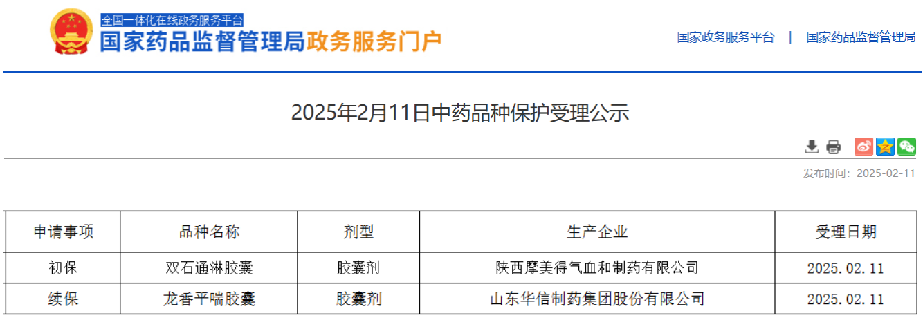 近日,据国家药监局官网显示,陕西摩美得气血和制药的双石通淋胶囊和山东华信制药集团的龙香平喘胶囊,这两款备受瞩目的中药品种保护申请同日获受理。