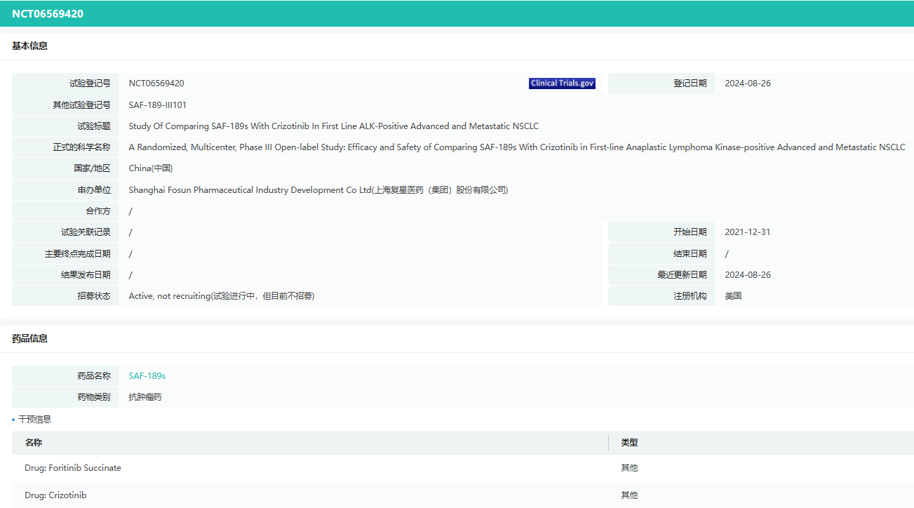 在2024年世界肺癌大会(WCLC)上,复星医药公布了复瑞替尼治疗ALK阳性非小细胞肺癌的3期REMARK研究(NCT06569420)的期中分析结果。该研究旨在对比复瑞替尼和克唑替尼在初治ALK阳性晚期或转移性非小细胞肺癌患者中的疗效和安全性。