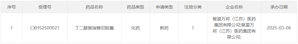 3月6日,据CDE官网显示,复星医药成员企业复星万邦提交的1类新药丁二酸复瑞替尼胶囊上市申请已获受理。据摩熵医药数据库显示,该品种为复星医药研发的小分子创新药,属于新一代ALK/ROS1抑制剂,拟用于ALK突变阳性非小细胞肺癌的治疗。