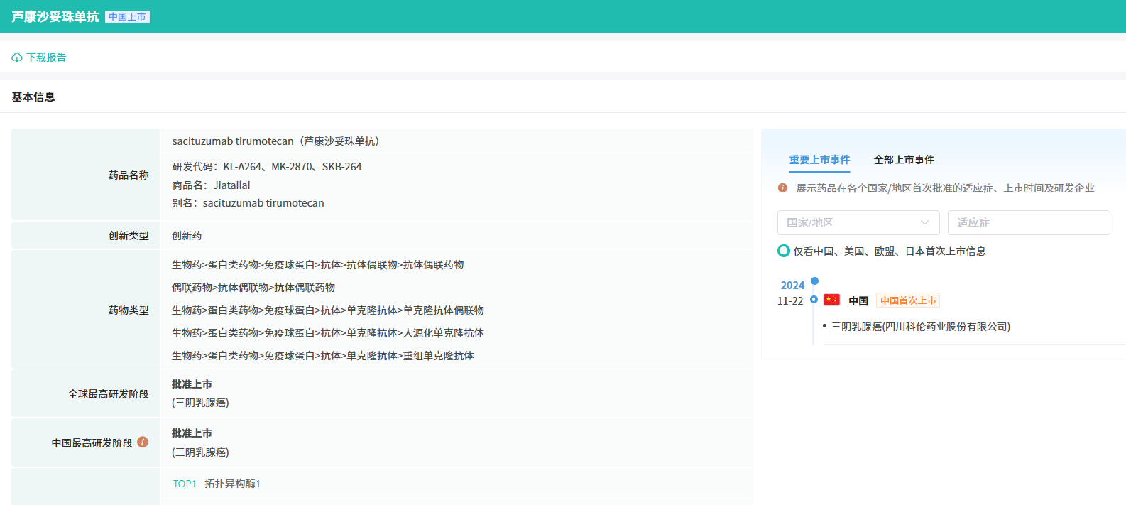 想要解锁更多药物研发信息吗?查询摩熵医药(原药融云)数据库(vip.pharnexcloud.com/?zmt-mhwz)掌握药物基本信息、市场竞争格局、销售情况与各维度分析、药企研发进展、临床试验情况、申报审批情况、各国上市情况、最新市场动态、市场规模与前景等,以及帮助企业抉择可否投入时提供数据参考!注册立享15天免费试用!