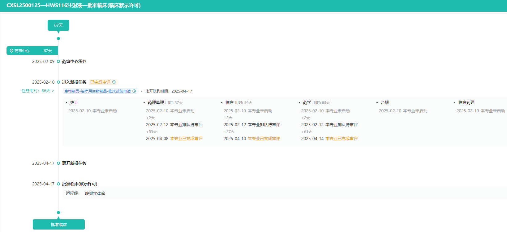 HWS116注射液审评时间轴