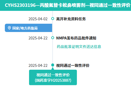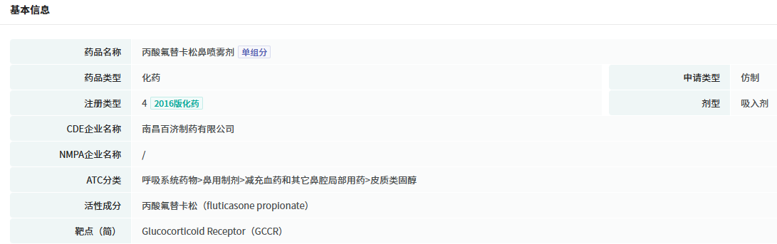 据NMPA官网公示,4月22日,远大九和 (江西) 药业有限公司 (曾用名:南昌百济制药有限公司)研发的丙酸氟替卡松鼻喷雾剂获批上市,视同通过一致性评价,为国内该产品首家通过/视同通过一致性评价的企业。