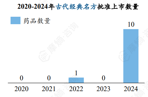 2023年我国古代经典名方申报上市产品达到10个,2024年更是达到了17个。2024年,我国古代经典名方审批迎来历史性突破,全年共有10款古代经典名方制剂获批上市,中药审评制度红利正在持续释放。