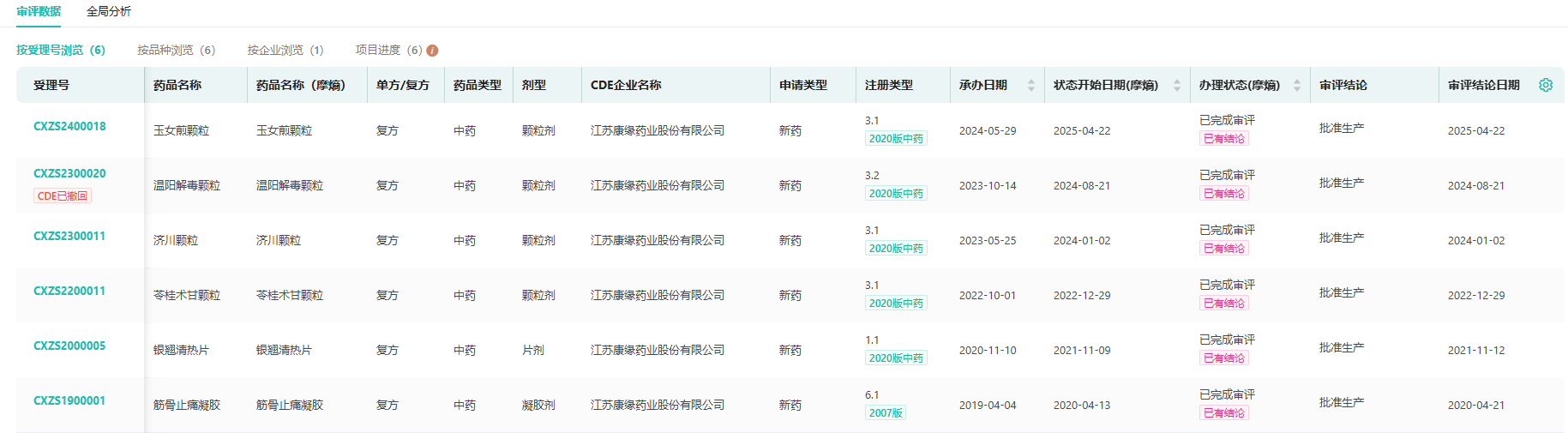 截图来源:摩熵医药中国药品审评数据库