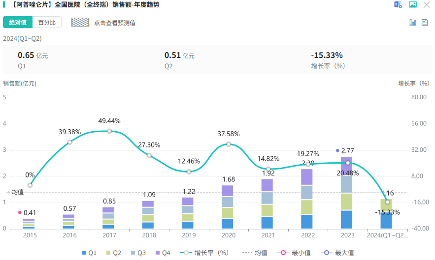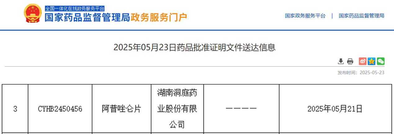 5月23日,据NMPA官网显示,复星医药旗下子公司湖南洞庭药业提交的仿制药阿普唑仑片通过一致性评价。据摩熵医药数据库显示,湖南洞庭药业为阿普唑仑片第六家过评企业,此前已过评企业包括山东信谊制药(首家过评)、恩华药业、齐鲁制药等。