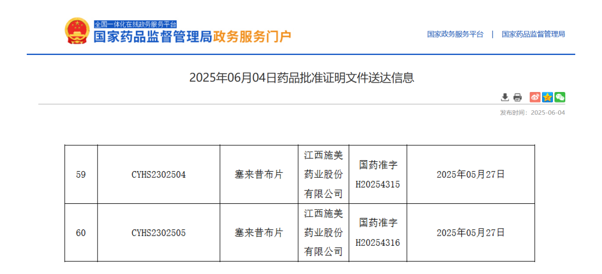 值得注意的是,施美药业此前已通过非布司他片、枸橼酸西地那非口崩片等产品打开抗痛风、性功能障碍类药物市场,此次塞来昔布片的获批,也将进一步丰富其肌肉-骨骼系统药物产品线。
