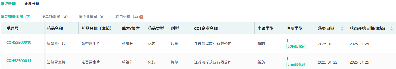 截图来源:摩熵医药中国药品审评数据库