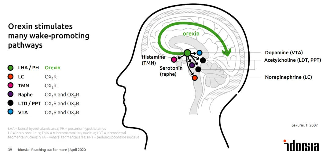 与传统镇静催眠药物通过镇静大脑来促进睡眠的疗法不同,达利雷生通过阻断食欲素神经肽(食欲素1和食欲素2)与其受体的结合,帮助失眠患者入睡和保持睡眠,且次日无宿醉感、昏睡感。
