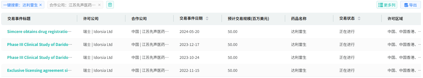 截图来源:摩熵医药全球药物交易数据库