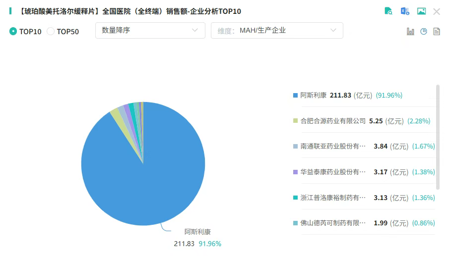 琥珀酸美托洛尔缓释片销售数据