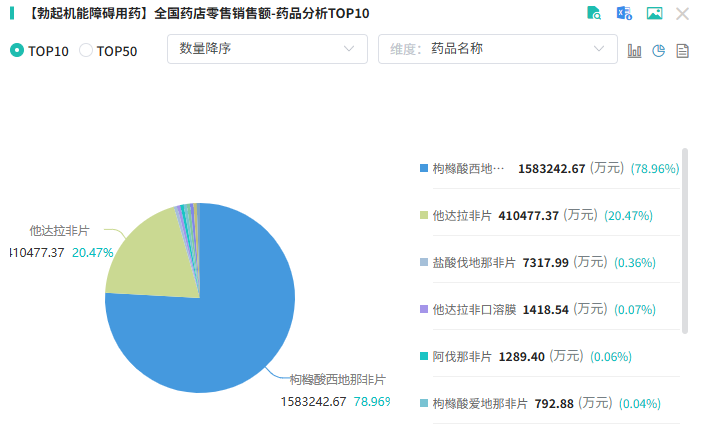 其中,零售市场始终占据着主战场的核心地位。据摩熵医药销售数据显示,在全国药店零售端,勃起机能障碍用药累计销售额已达200亿元,2023年创销量新高,突破44亿元,同比递增12.35%。