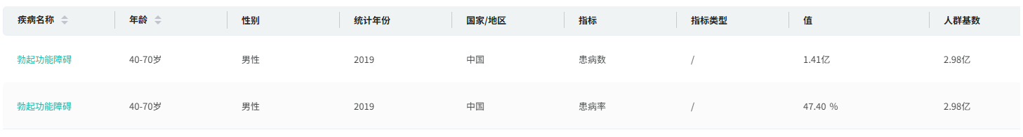 据世卫组织调研,全球约有超过3.2亿成年男性深受ED之苦,且连年递增。摩熵化学流行病学数据也显示,2019年ED在我国40-70岁男性中的患病人数为1.14亿人,具有巨大的商业化价值。