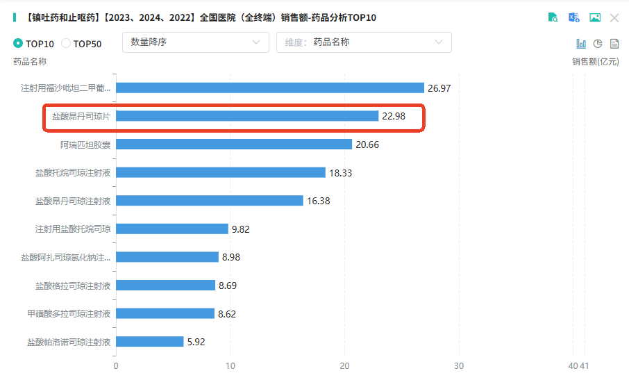 市场竞争格局方面,盐酸昂丹司琼片亦表现不俗,连续三年跻身院内镇吐药和止呕药市场的TOP2。