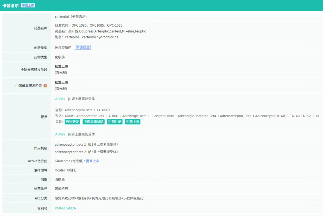 原研药由日本大冢制药开发,目前国内尚无仿制药上市,青光眼治疗市场也长期被Apotex、Sandoz等外资企业垄断,形成技术壁垒与市场空白并存的局面。