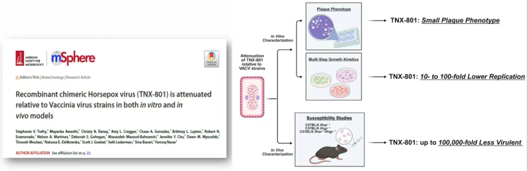 传染病领域的候选产品均处于临床前研发阶段,其中,TNX-801基于重组马痘病毒平台,为单剂量活病毒疫苗,具有长效免疫、常温储存等优势。2025年7月10日,Tonix Pharmaceuticals介绍了TNX-801的最新发现,数据显示,TNX-801能够提供持久的免疫力且不存在活病毒疫苗的安全性问题,新发现表明TNX-801的皮下给药与经皮给药提供相当的保护效果,公司会优先开发皮下给药产品TNX-801有望成为控制猴痘及防范天花恶意重新引入的关键工具,后续会通过皮下给药途径推进TNX-801进入临床阶段。