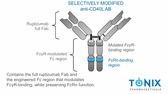 TNX-1500是第三代抗CD40L单克隆抗体,通过Fc段工程化改造,在保留疗效的同时降低血栓风险,解决了前两代药物的安全性问题。
