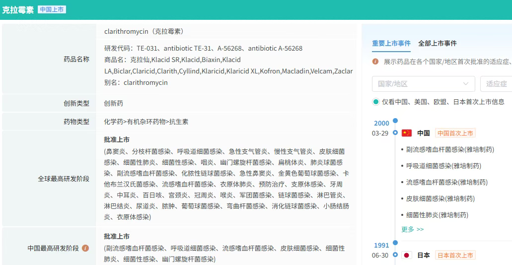 该药物由日本大正制药株式会社于20世纪80年代开发,后原研技术转让至雅培制药,并于1990年12月获FDA批准上市,目前已覆盖全球50多个国家或地区。