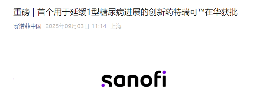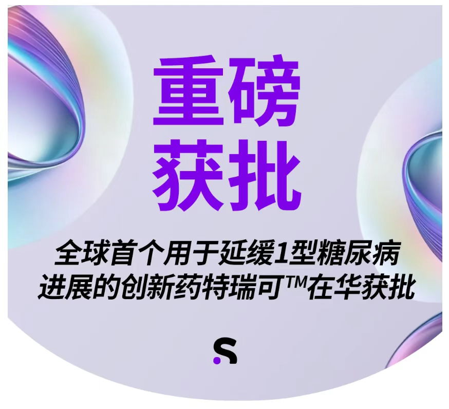 刚刚,赛诺菲宣布,旗下替利珠单抗注射液(商品名:特瑞可TM,英文商品名:Tzield®)获中国国家药品监督管理局(NMPA)批准,用于8岁(含)以上儿童和成人1型糖尿病2期患者,以延缓向1型糖尿病3期进展。