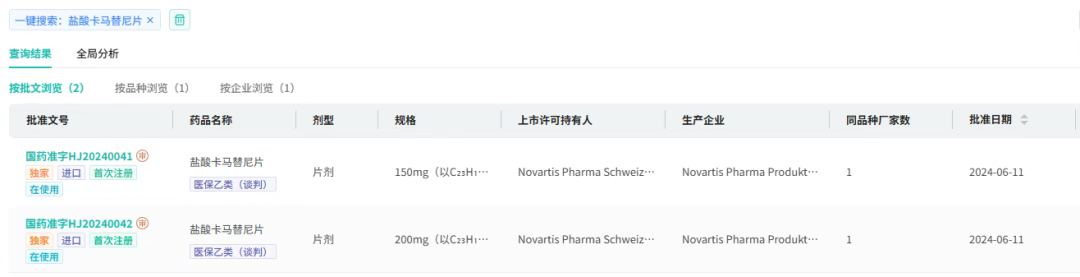 截图来源:摩熵医药中国药品批文数据库