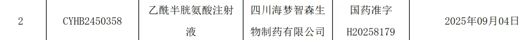 9月5日,NMPA发布批准文件,乙酰半胱氨酸注射液再添一家过评企业。这是继2024年10月四川汇宇获批之后,第二家顺利过评。