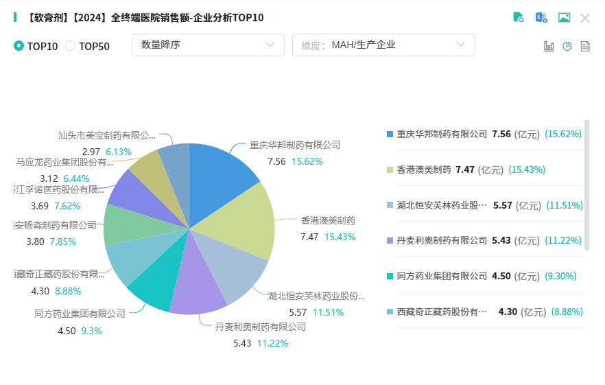 在软膏剂市场的竞争格局中,糠酸莫米松乳膏于2024年跻身软膏剂产品TOP4之列。其中华邦制药凭借15.62%的市场份额,在院内市场中独占鳌头,其次是香港澳美制药。