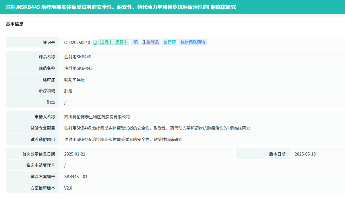 在抗肿瘤和免疫调节剂领域,科伦博泰成果丰硕。已有塔戈利单抗注射液(PD - L1)、注射用芦康沙妥珠单抗(TROP2 ADC)等1类新药,以及生物类似药西妥昔单抗注射液获批上市。2025年以来,科伦博泰有3款新药获批临床,且这3款新药均为抗肿瘤和免疫调节剂,包括1类新药SKB107注射液(RDC)、注射用SKB445(ADC),以及2.2类新药A140注射液,其中注射用SKB445已启动晚期实体瘤适应症的I期临床。