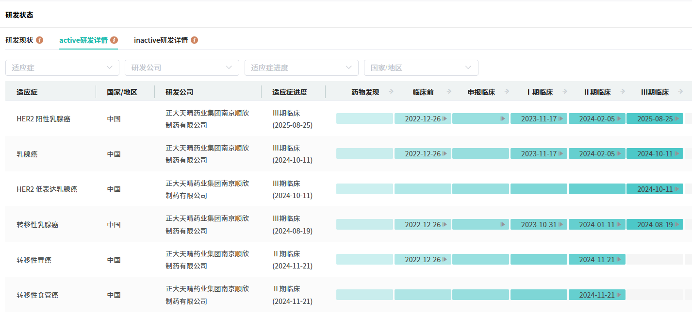 目前,正大天晴正积极推进TQB2102在多种肿瘤治疗领域的临床研究,其适应症广泛覆盖HER2阳性乳腺癌、HER2低表达乳腺癌、非小细胞肺癌、胆道癌、三阴性乳腺癌、HER2阳性胃癌及HER2阳性结直肠癌等。尤为引人注目的是,针对HER2低表达乳腺癌及HER2阳性乳腺癌的研究已顺利迈入Ⅲ期临床阶段,标志着该药物在乳腺癌治疗领域取得了重要进展。