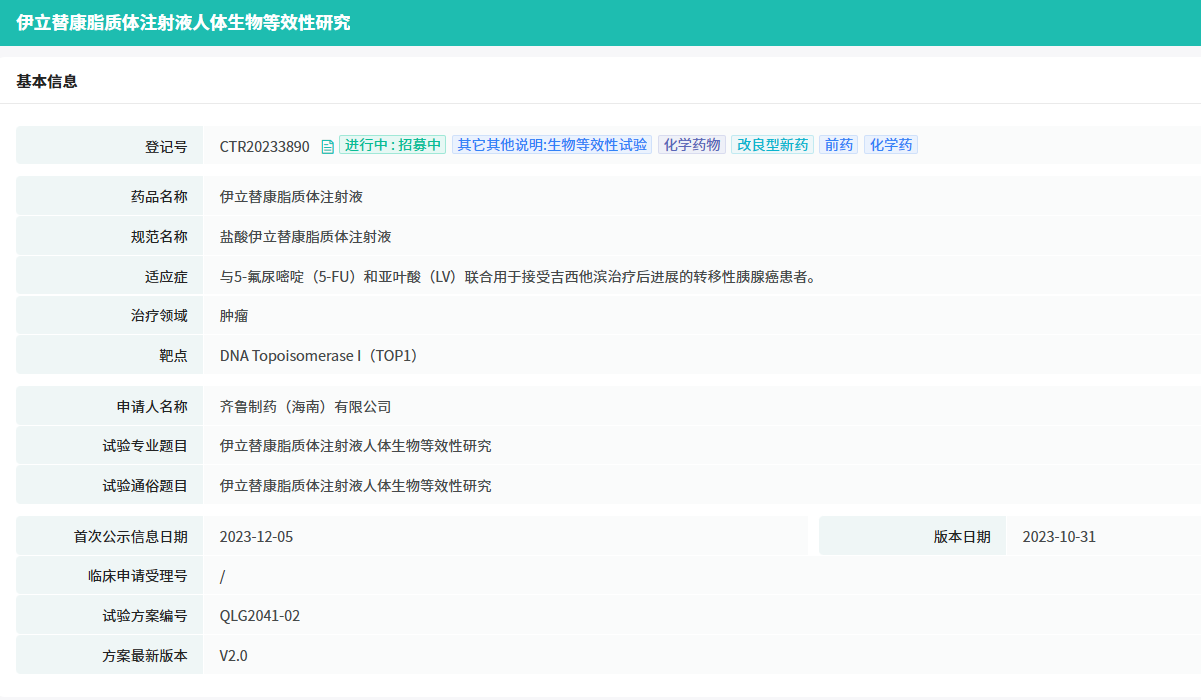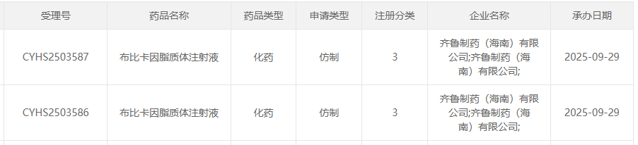 近日,据中国国家药品审评中心(CDE)官网公示,齐鲁制药(海南)按化药注册分类3类申报的布比卡因脂质体注射液上市申请获受理。目前,该品种国内仅2家药企拥有生产批文。