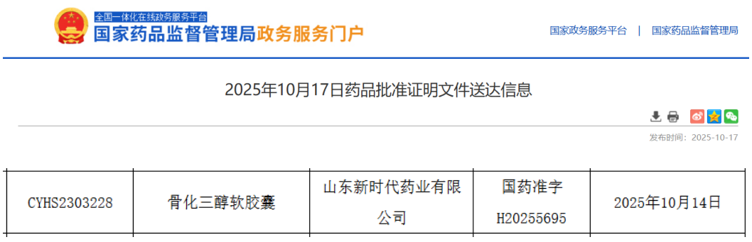 10月17日,据NMPA官网最新公示,山东新时代药业按化药注册分类4类申报的骨化三醇软胶囊获批上市,且视同通过一致性评价。今年以来,该药企有23款品种获批并过评,其中比拉斯汀口腔崩解片为首家过评品种。