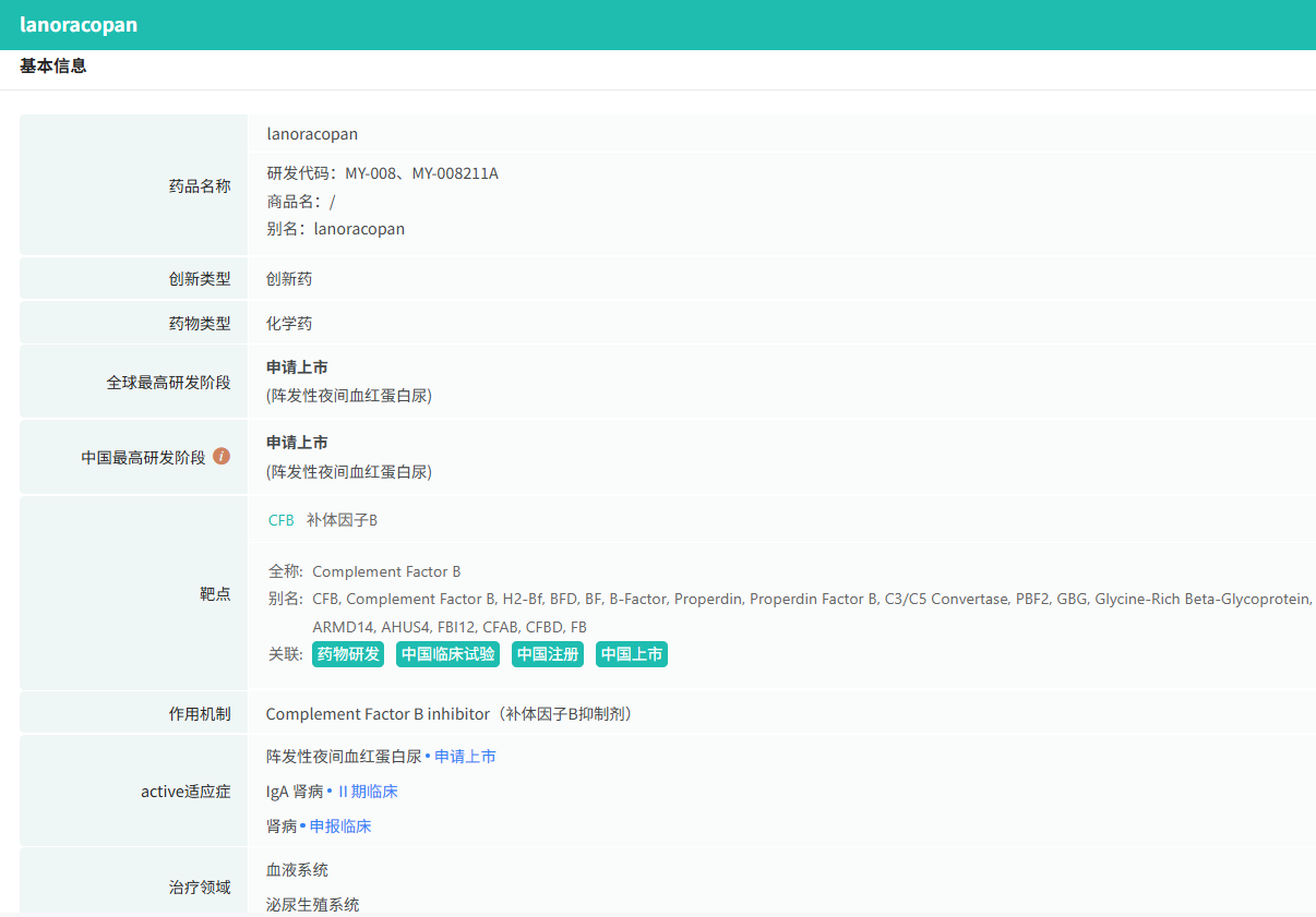 近期在2025年10月15日,武汉朗来科技发展有限公司(以下简称“朗来科技”)自主研发的化学药品1类创新药 MY008211A片 ,结束拟优先审评品种公示期,被国家药品监督管理局药品审评中心(CDE)正式纳入优先审评品种名单,用于治疗既往未接受过补体抑制剂治疗的阵发性睡眠性血红蛋白尿症(PNH)成人患者。