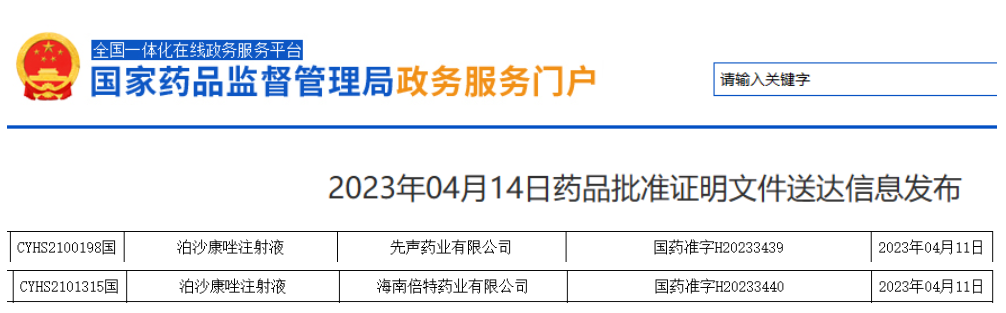 2021年4月,江苏奥赛康药业的泊沙康唑注射液在通过一致性评价,获批上市,是该三唑类抗真菌药物的国内首仿药。此次先声药业和海南倍特同日过评,并列为第2/3家获得该品种批文的药企。此外,还有江苏正大丰海制药、正大天晴、湖南科伦制药等十余家药企已递交泊沙康唑注射液上市申请,均在审评审批中。